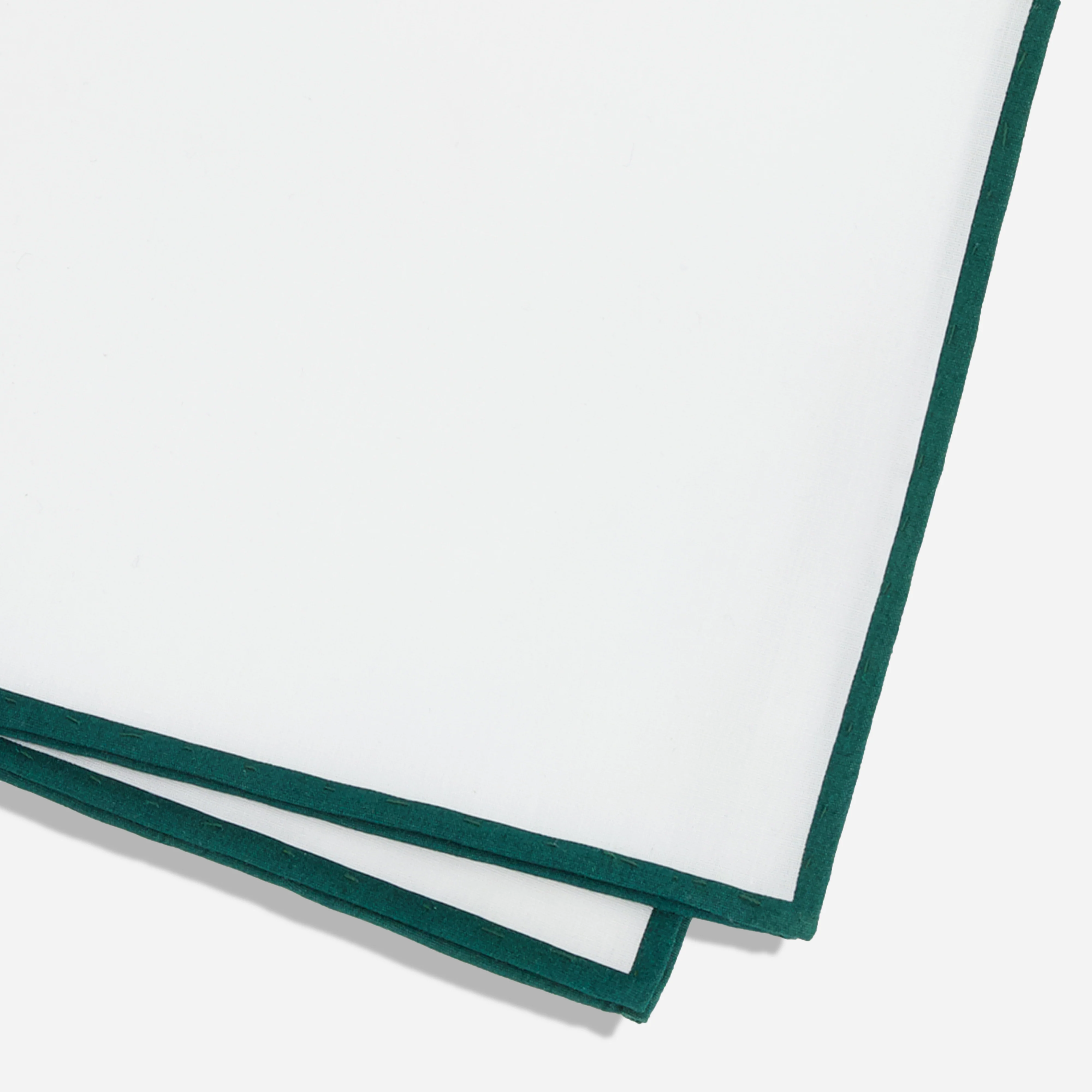 White Cotton With Border Hunter Green Pocket Square
